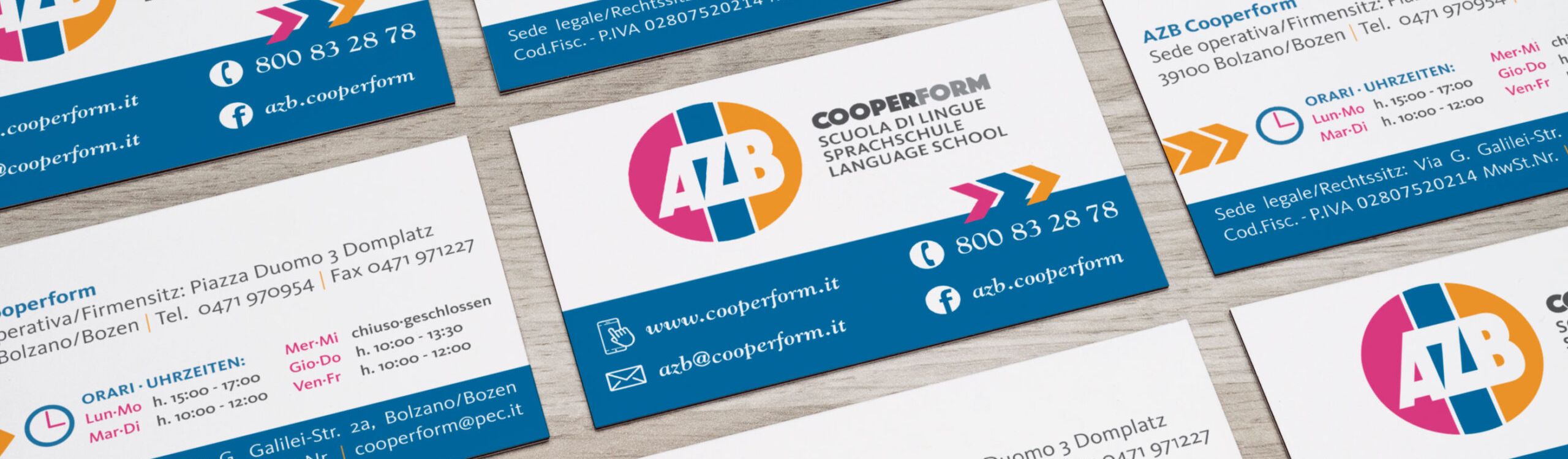 AZB è una scuola di lingue presente da oltre 50 anni sulla scena culturale dell’Alto Adige. Acquisita una decina d’anni fa da Cooperform, ha subito un restyiling completo, pur mantenendo la riconoscibilità del marchio.