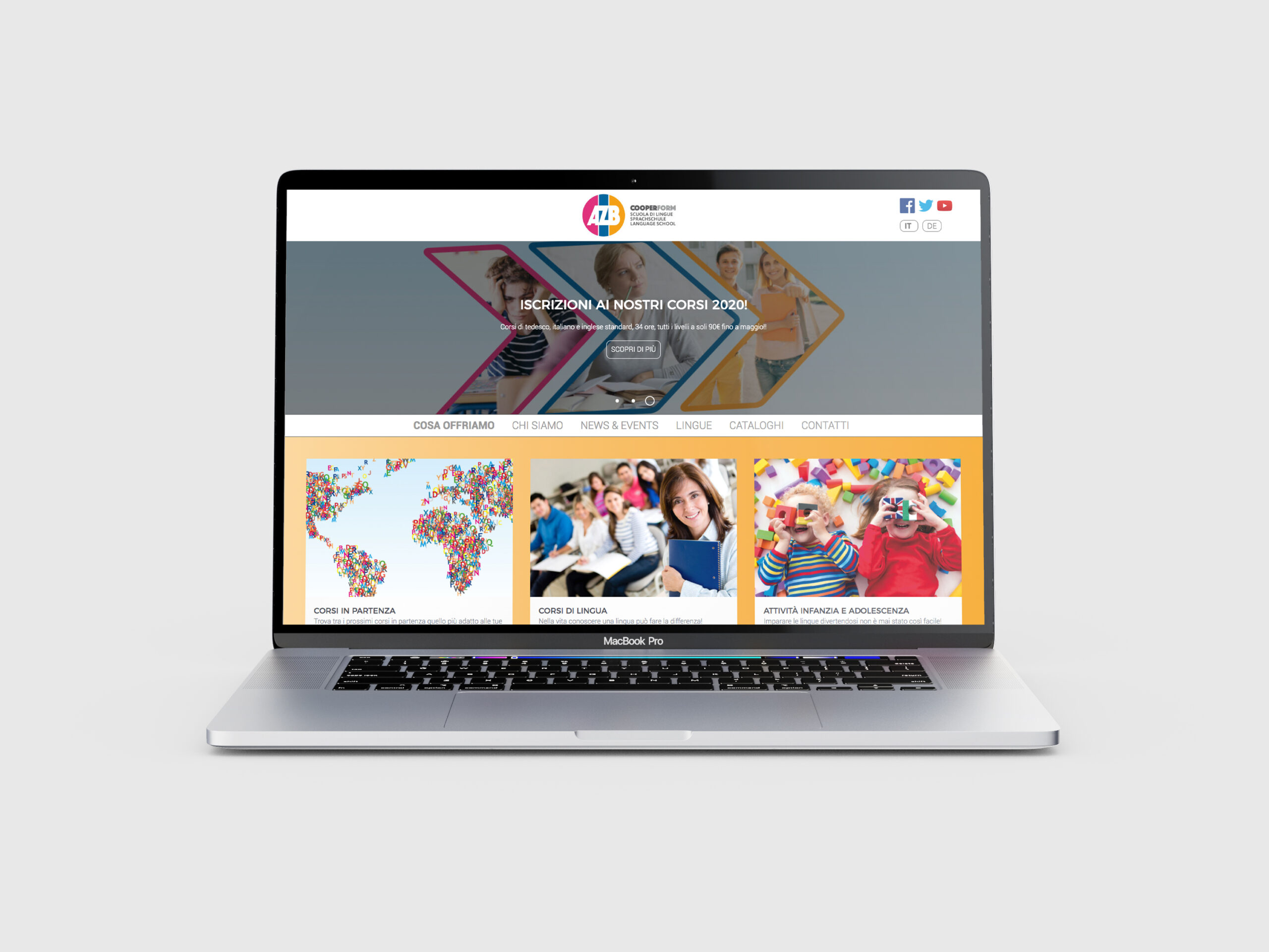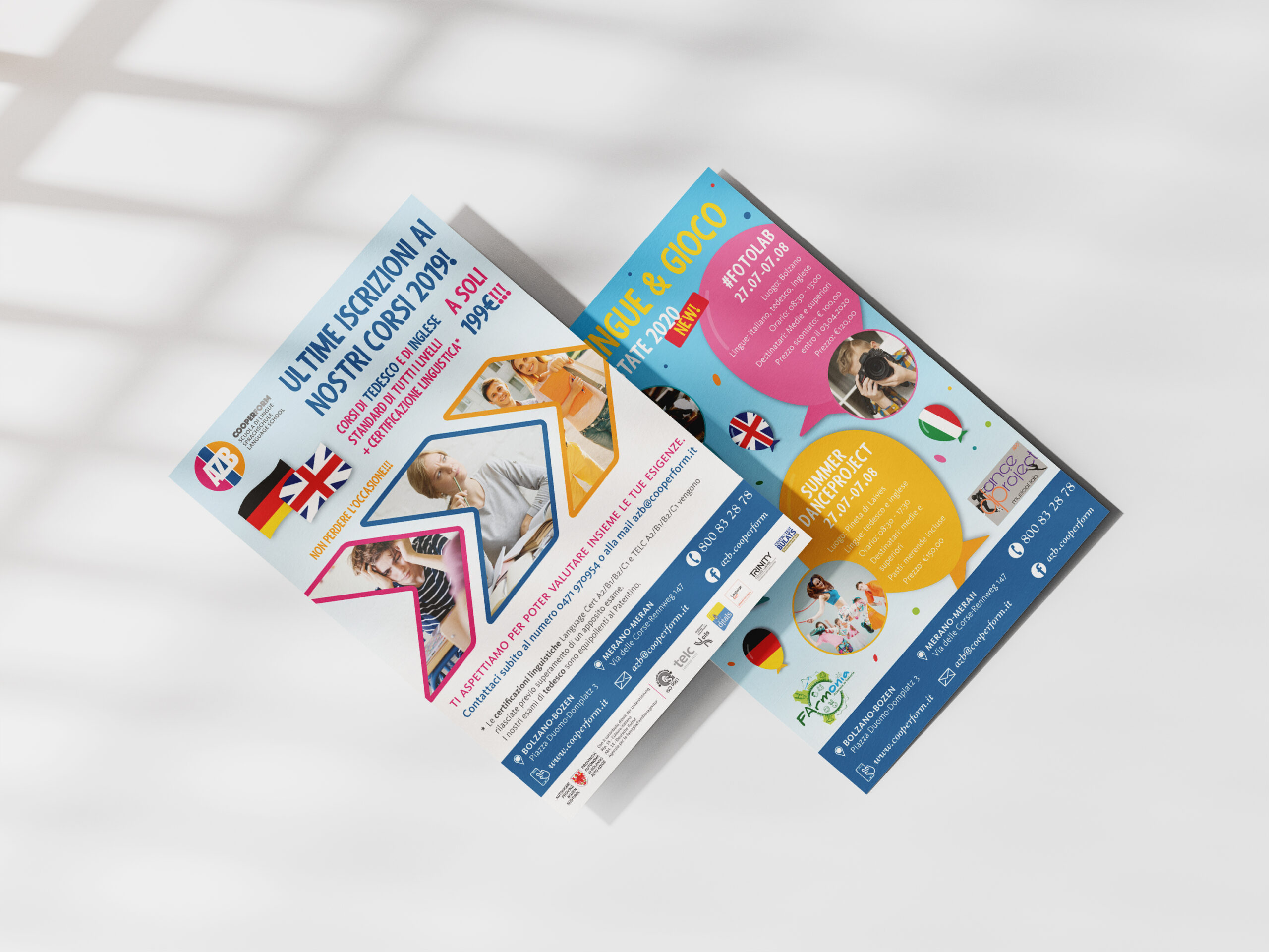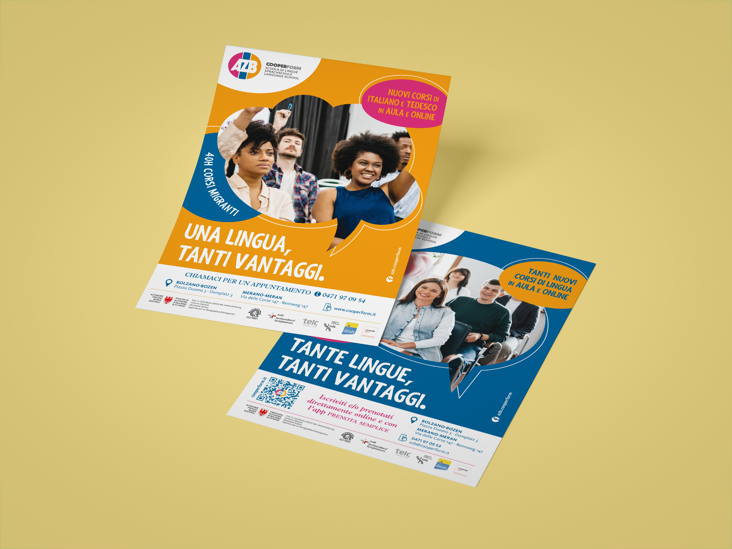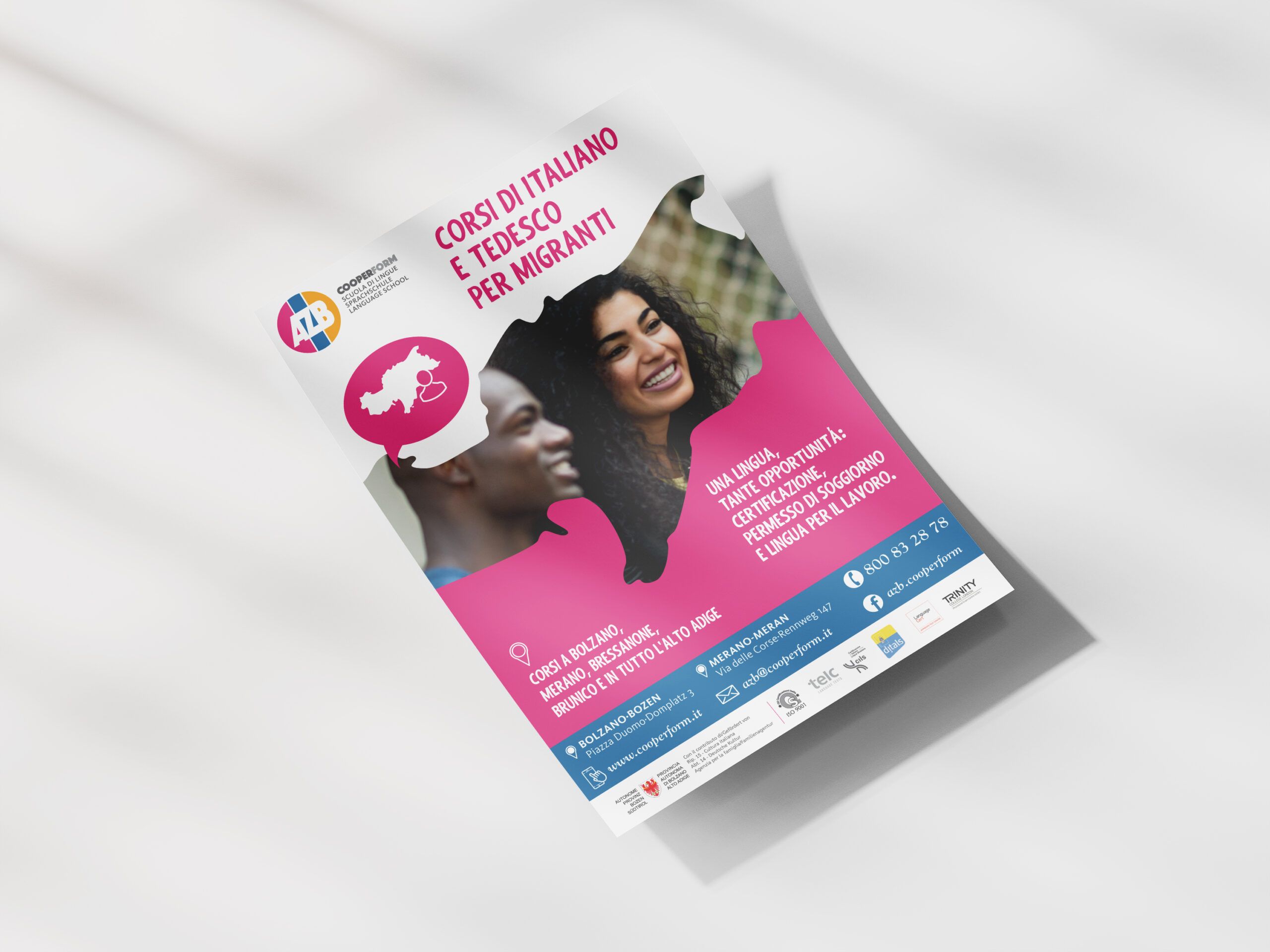 AZB è una scuola di lingue presente da oltre 50 anni sulla scena culturale dell’Alto Adige. Acquisita una decina d’anni fa da Cooperform, ha subito un restyiling completo, pur mantenendo la riconoscibilità del marchio.