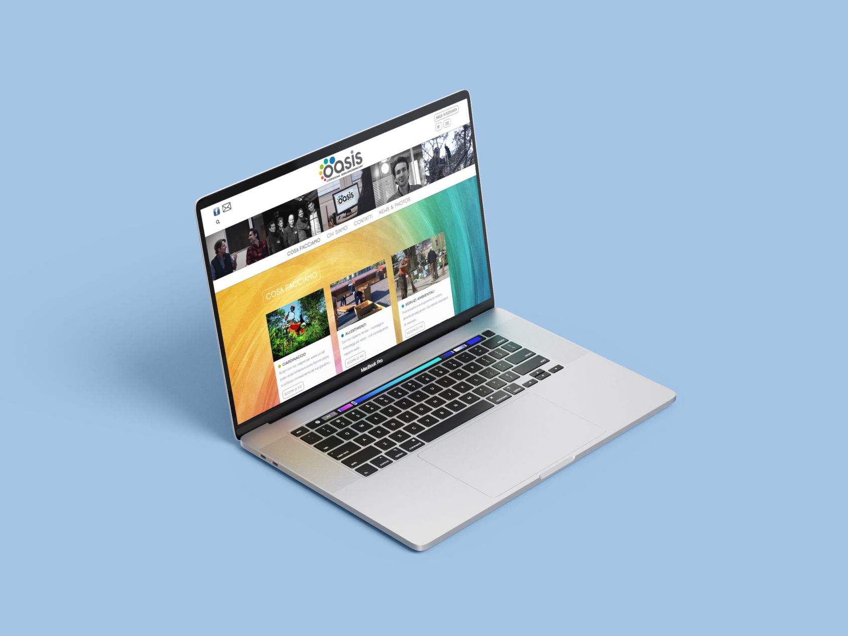 Anche la cooperativa sociale Oasis aveva necessità di un restyling completo, avendo un logo datato e poco significativo. Lavorando su settori molto diversi fra loro, una sfida è stata la creazione di un logo poliedrico adatto alle diverse necessità. Il nuovo marchio, dinamico, amichevole e con una forte personalità, presenta i diversi settori con colori diversi di riferimento, colori che si rispecchiano anche nel sito (realizzato in Joomla) e nelle grafiche specifiche.